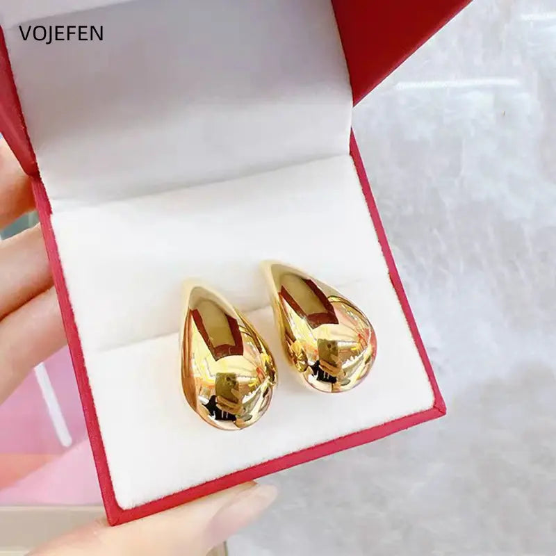 18K Gold Water Drop Earrings - Luxury Studs for Parties - VOJEFEN