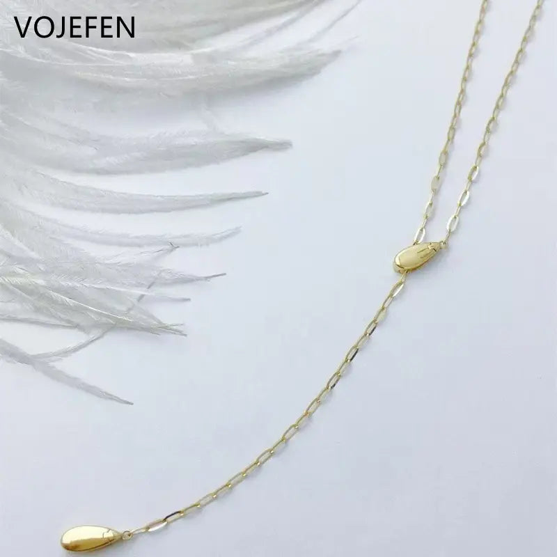VOJEFEN Original 18K Gold Waterdrop Pendant Necklace New In "Y" Long Chains Neck Choker Adjustable Fashion Jewelry Luxury Brand