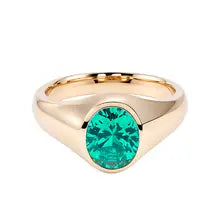 Item:Provence 18K/14K/10K Solid Gold Oval Cut Lab Grown Colombian Simple Bezel Ring For Man Party Customized Gift