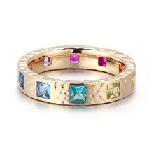 Item:Provence 18K/14K/10K Solid Gold Rainbow Color Princess Cut Lab Grown Gems Colorful Stackable Ring For Women Customized Gift