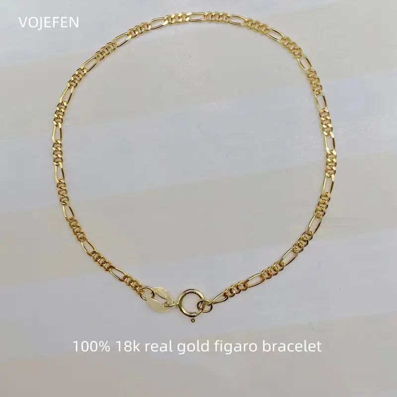 VOJEFEN AU750 Bracelet Luxury For Women Gold 18K Original High Quality Fine Jewelry Figaro Chain New In Personalized Bracelets chains width 1.3mm