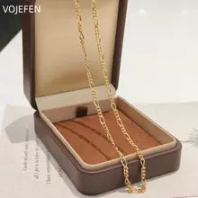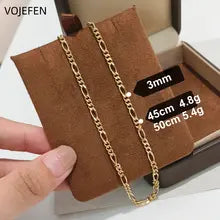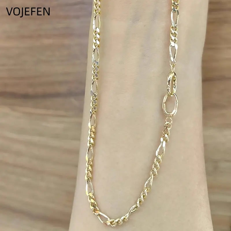 VOJEFEN, 18 K Real Gold Woman Jewelry, Figaro Chains Necklace, Fashion Genuine, Cuban Link Chain Man, Neck 2023, Luxury Quality Choker