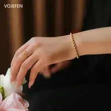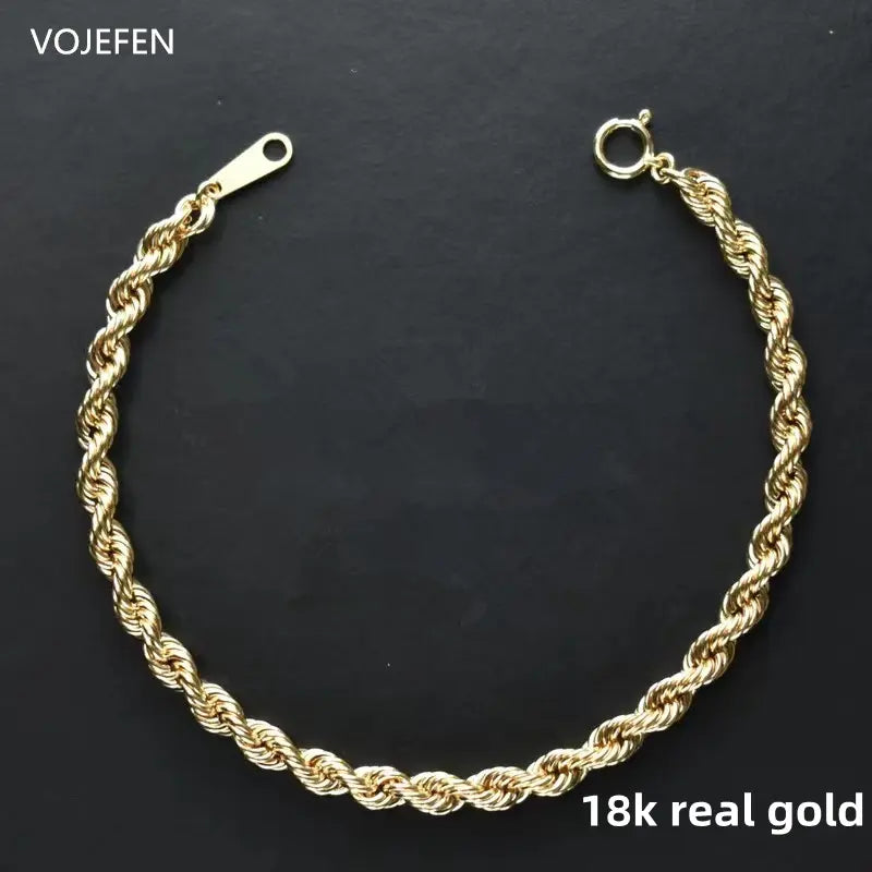 VOJEFEN, 18K Gold Bracelets, Real Gold Jewelry, Personalized Rope Chains, For Woman/Men, Big Links Genuine Luxury Brand,