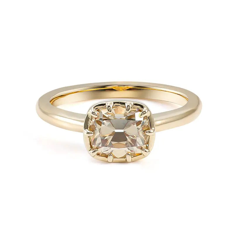 Item:Provence 10K Yellow Gold Solitaire Ring With 7*8 Old Mine Cut Champagne Moissanite Diamond For Women Bezel Engagement Ring Gift