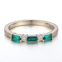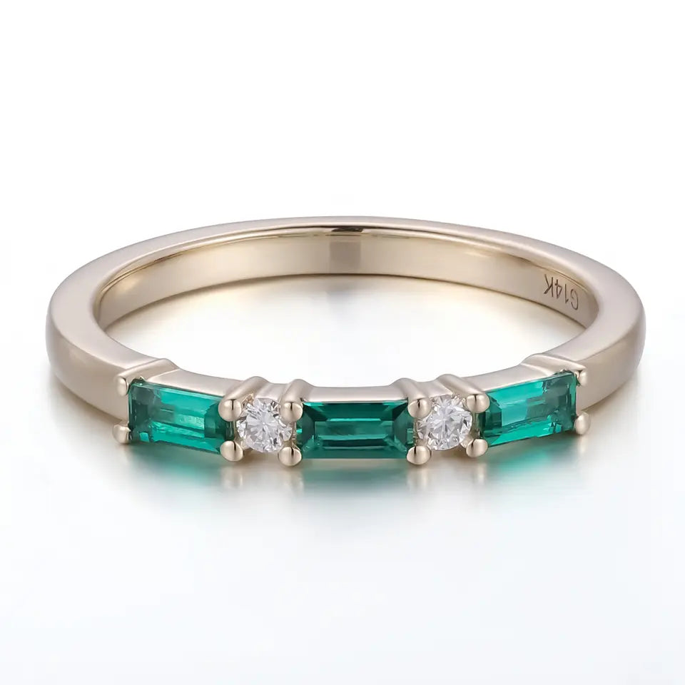 Item:Provence 14K Yellow Gold Stackable Band With 2*4mm Baguette Lab Emerald and Round Moissanite Diamonds For Women Matching Band