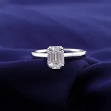 Provence Women's 4 prong Solitaire Emerald Cut Moissanite Ring 7.5*5.5mm 14K White Gold Engagement Wedding Promise Band
