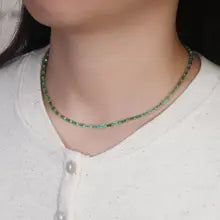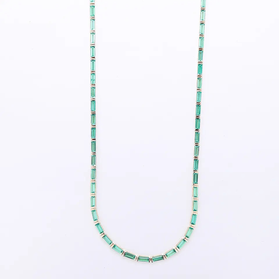 Provence 18K Solid Gold Baguette Lab Grown Zambian Tennis Necklace