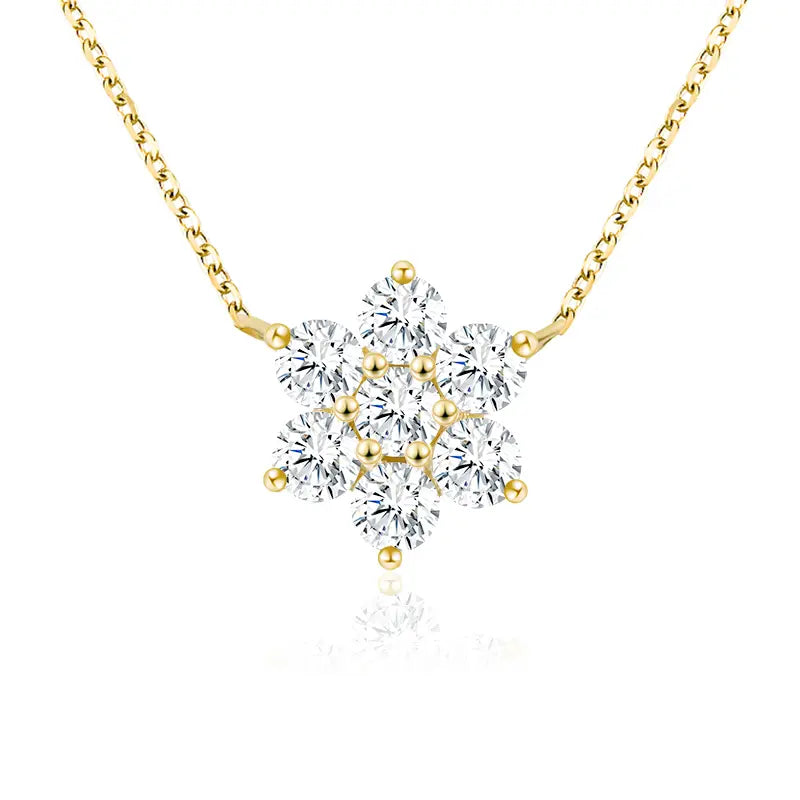 Item:Provence Snowflake Necklace Solid 14K Yellow Gold Jewelry with Round Moissantie Diamonds For Women Classic Necklace Anniversary