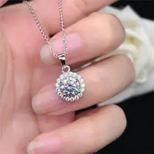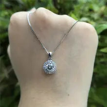 Pure 14K White Gold AU585 Pendant 0.5CT 1CT 2CT Round Moissanite Engagement Pendant Necklace For Women Love Promise Jewelry - 1 carat 6.5mm