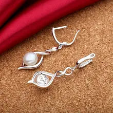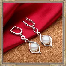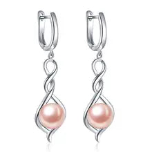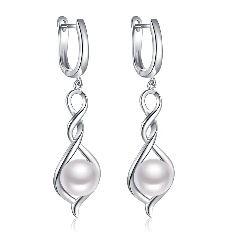 Sinya 925 Sterling Silver Drop Hoop Earring High Luster Natural Freshwater Pearls Jewelry Best Gift for Women Ladies Mum - Natural white pearls
