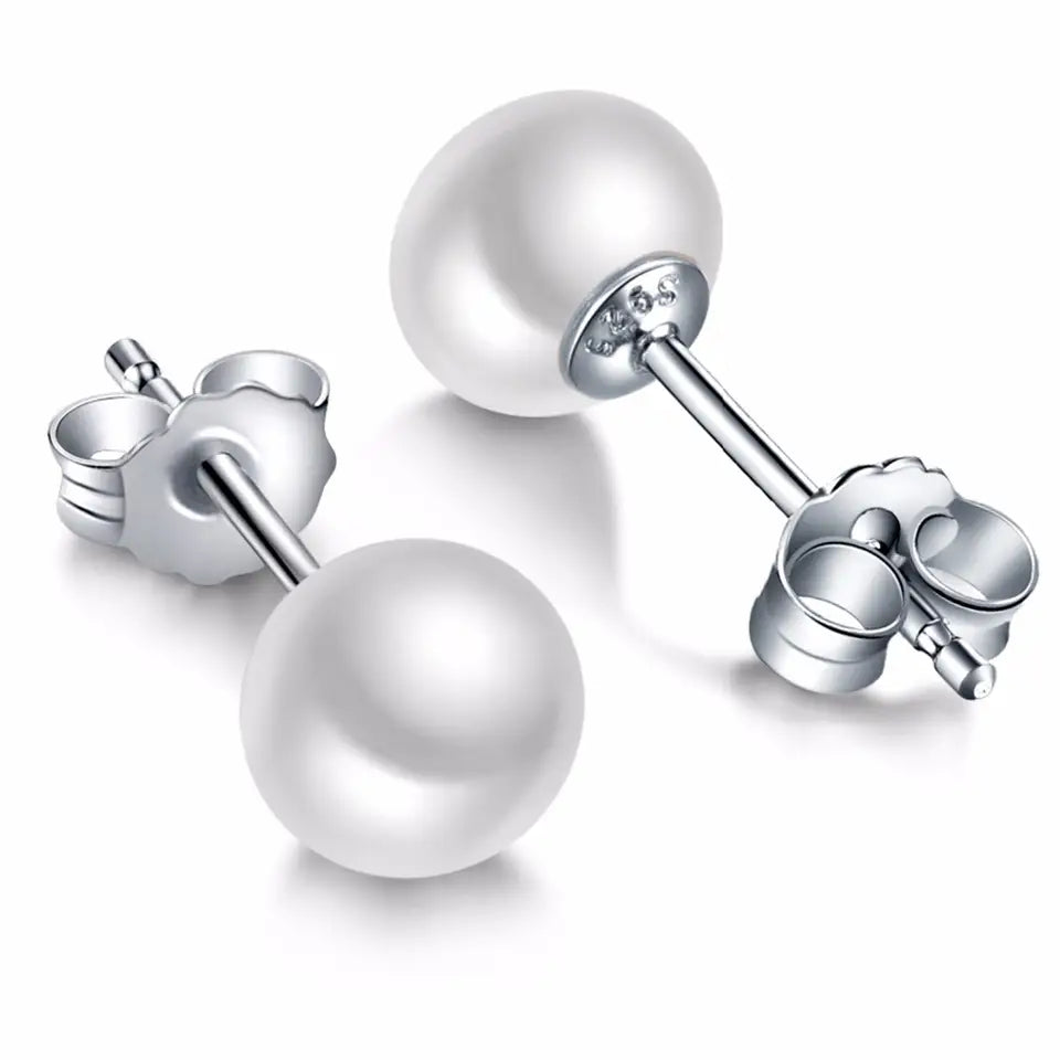Sinya 925 Sterling Silver Pearl Stud Earring High Luster Natural Fleshwater Pearls 6-12.5mm Classical Fine Jewelry Earring - 6mm