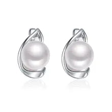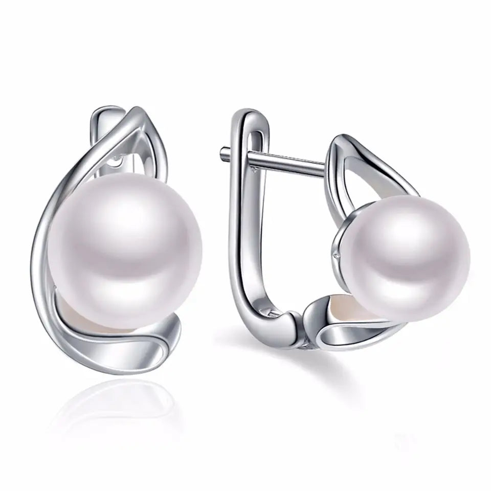 Sinya Fashion Moon Design Natural Pearls Earring In 925 Pure Sterling Silver For Women Mum Lover Girls Wedding Brand Jewelry Hot - Natural white pearls