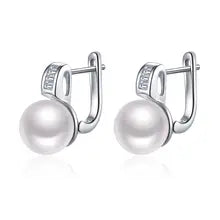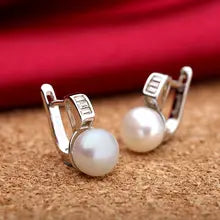 Sinya Freshwater Pearls Earring 925 Sterling Silver Euro English Lock Fine Jewelry New And Hot Hoop Earrings for Women Ladies - Natural white pearls