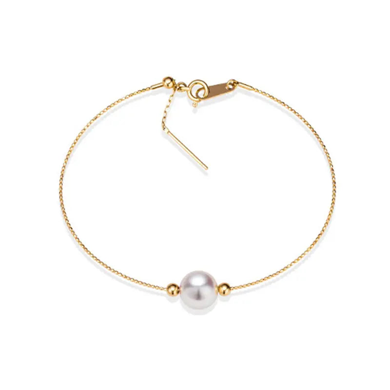 Sinya Natural Pearl 18k Gold Beads Au750 Jewelry Bangles Can Adjust Wear Length DIY Jewellery for Women Girl Mum Lover - 7-7.5mm