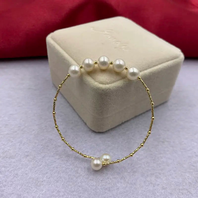 Sinya Natural Pearl 18k Gold Tube Bangles Bracelet for Women Girl Mum Lover Diameter 55mm Pearls Dia 7-8mm News - Yellow gold color