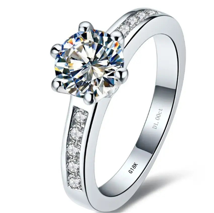 Solid 18K White Gold AU750 Ring 1CT Moissanite Wedding Ring For Women Statement Anniversary Day Popular Gift For Girl D Color - 4 Clear