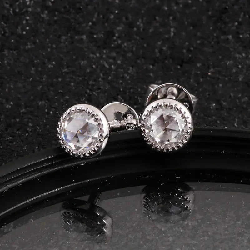 Item:Provence 18/14/10K White Gold Rose Cut Round Moissanite Bezel Earrings with GRA certificate For Women Trendy Gift