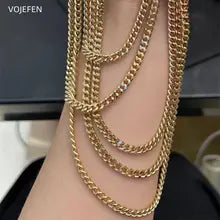 VOJEFEN 18K Gold Cuban Necklace for Men & Women - Luxury Choker Chain