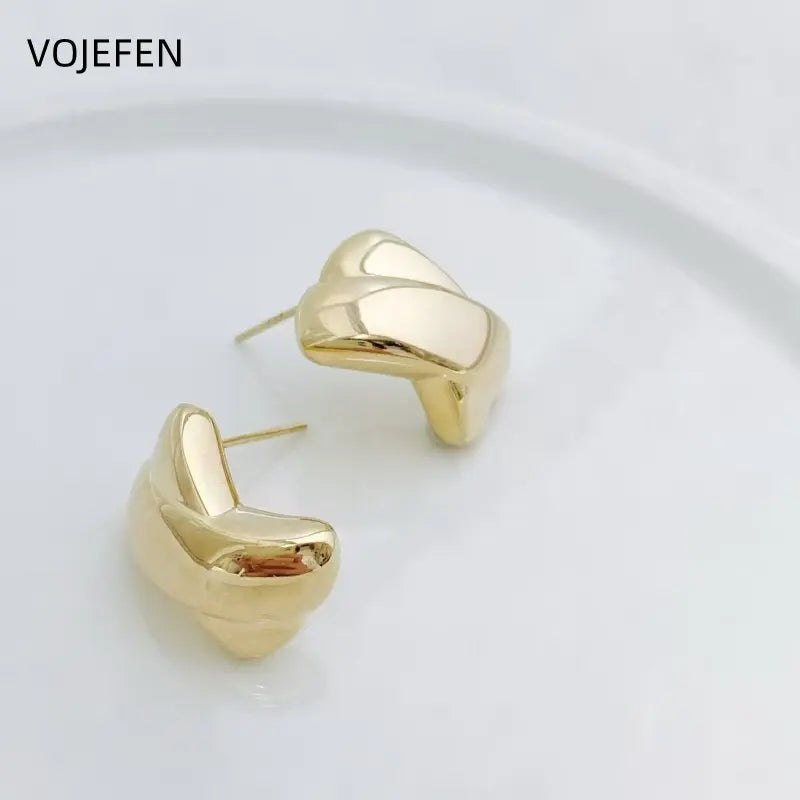 VOJEFEN 18k Gold Stud Earrings - Luxury Vintage Fine Jewelry for Women