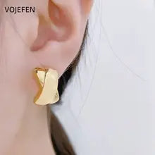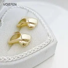 VOJEFEN, Original 18k Gold, Stud Earrings Heart, Fashion Jewelry, Women's Accessories, Luxury Gift, Modern Real Gold Earings Jewelery